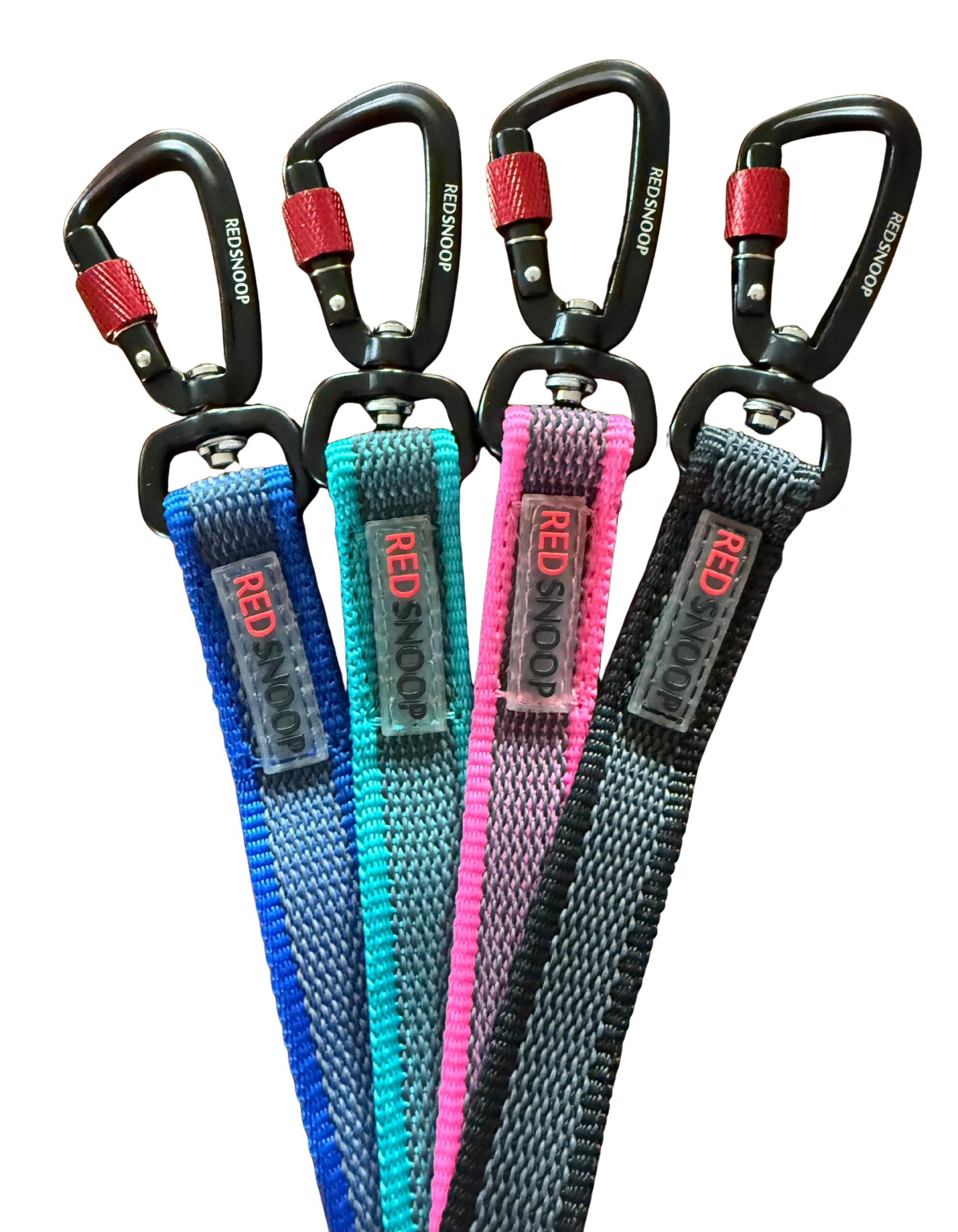 Die Leine besteht aus Nylon mit eingearbeitetem Gummi als extra Grip.